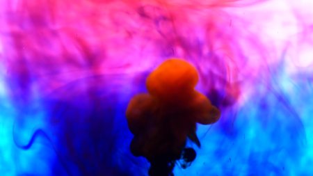 colored ink clouds in red green blue as a symbol for mixing additive colors
