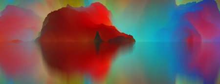magical world. Abstract Landscape, surreal lake and reflections. art, creativity and imagination. 3d illustration.
