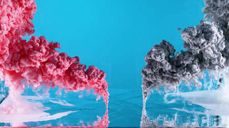 Bright colorful background Blue and red Liquid ink colors blending in water.