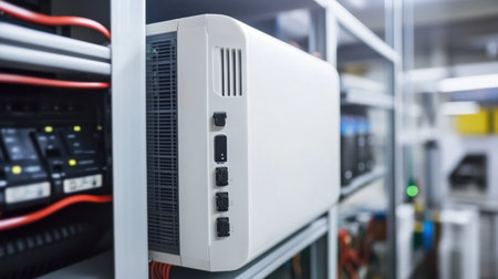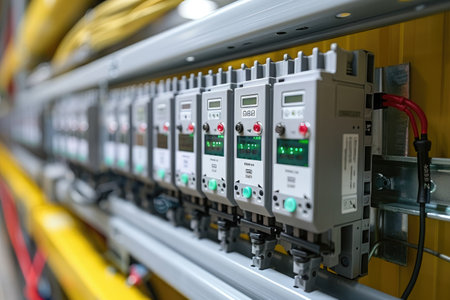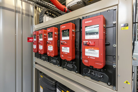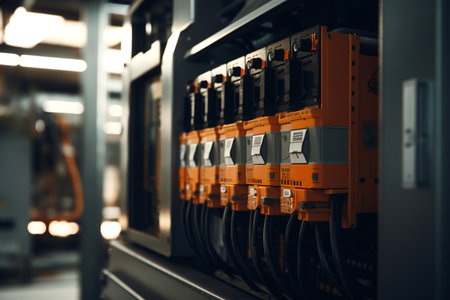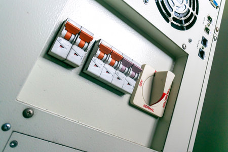 A circuit breaker in a control cabinet data center professional photography