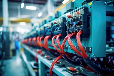 Close-up view of intricate electrical circuits and components in a technology environment