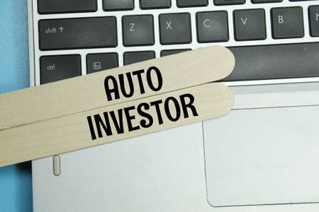 ice cream sticks, laptops with the word auto investor. business concept
