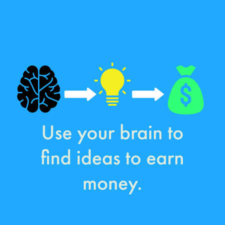 Illustration of icon brain,bulb and money with text Use your brain to find ideas to earn money.