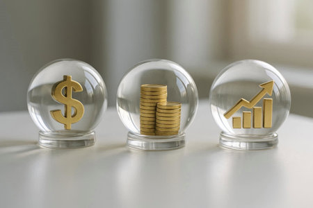A series of coins organized in progressively taller stacks, representing financial growth and investment potential, set against a minimalistic light background.