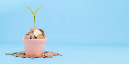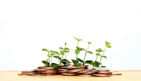 coins and money growing plant for finance and banking, saving money or interest increasing concept, Business growth