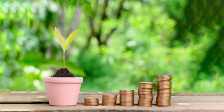 Stack money coin and tree with business graph finance economy bank and chart investment wealth accounting development concept.