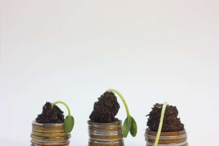The seedlings are growing on the coins, thinking about financial growth.