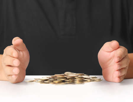 Businessman working with coin money currency. Concept of investment growth and money saving.
