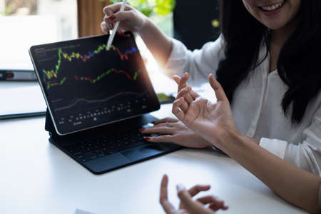 Fund managers team consultation and discuss about analysis Investment stock market by digital tablet.