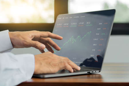 Businessman monitor digital graph chart trade online on computer, Trading online