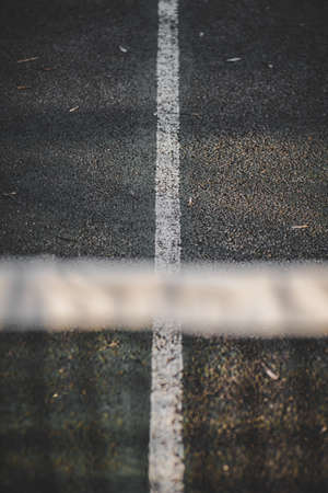 A selective focus shot of a tennis court line under the sunlight