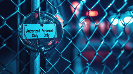 Temporary fencing and locked gate with Authorized Personnel Only sign