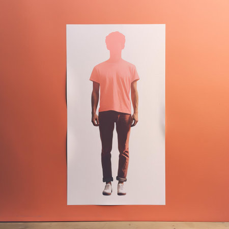 the man stands confidently in this stunning minimal screenprint illustration, rendered in bold lines and vibrant colors, showcasing the artist's skill in risograph print technique, capturing the essence of the male form in a full-body portrait that exudes simplicity and elegance. ai generated