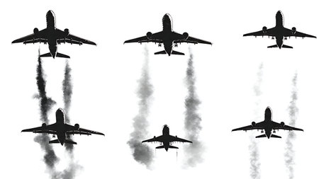 Airplane with Contrail / Vapor Trail Silhouette Set isolated on plain white background.