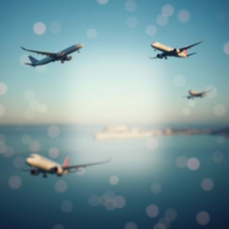 Witness the mesmerizing sight of various types of airplanes united in a breathtaking night sky. These magnificent aircraft illuminate the darkness with the vibrant trails of their engines, creating a spectacle reminiscent of shooting stars. The interplay between celestial wonders and human-made transportation is beautifully captured in this scene, as the airplanes soar through the vastness of space, their silhouettes gracefully intertwined like constellations of their own. In the background, a bustling airport comes to life, with runway lights guiding the airplanes towards their anticipated destinations. Prepare to be awe-struck by the magnificence of this cosmic atmosphere.