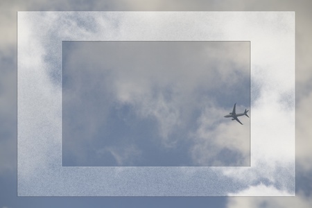 Airplanes in the sky with clouds in the background, toned