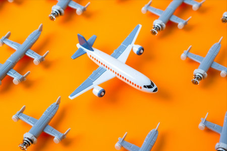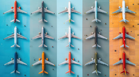 Playful Formation: A Colorful Array of Plastic Toy Airplanes Creates an Eye-Catching Top View