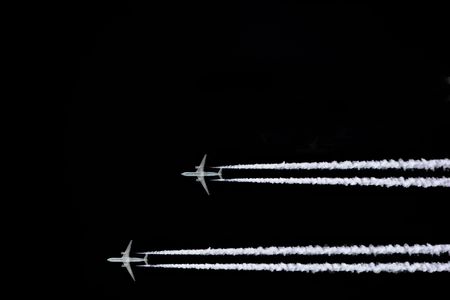 Airliner at high altitude with condesation trails