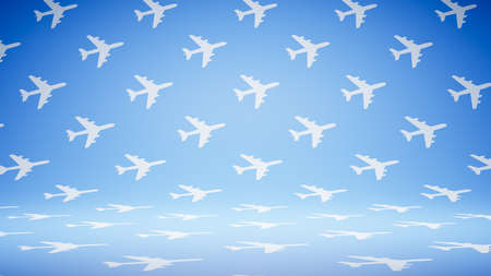 Blue pattern planes in the blue background. Perspective view. Minimal isometric. Aircraft travel concept. Geometric shape in pastel colors. 3d rendering