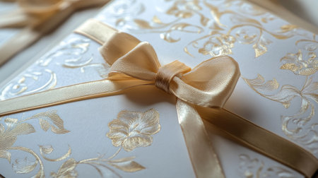 Elegant wedding invitations with gold accents, ribbons, and space for a message