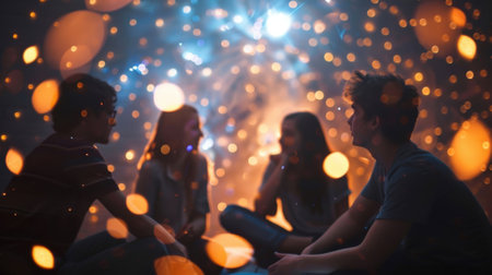A Group of Joyful Teenagers Holding Sparklers Illuminate the Dusky Evening, Celebrating Easter with Laughter and Light