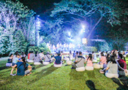 blur photo of plople listening outdoor concert in the garden at Hua hin, Thailand