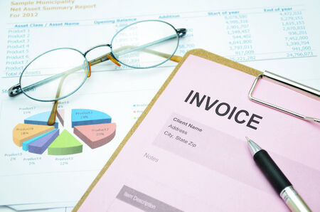 Close-up man work Invoice Bill Paid Payment At Office Invoice savings, finances bill
