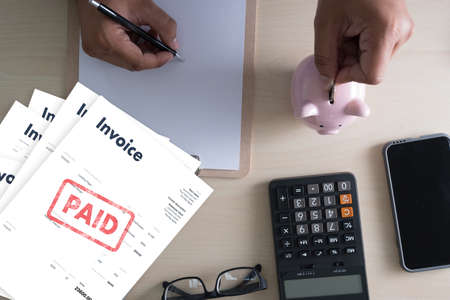 Close-up man work Invoice Bill Paid Payment At Office Invoice savings, finances bill