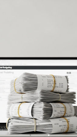 A tall, vertical shot (9:16) capturing a chaotic pile of old, rubber-banded physical receipts restin