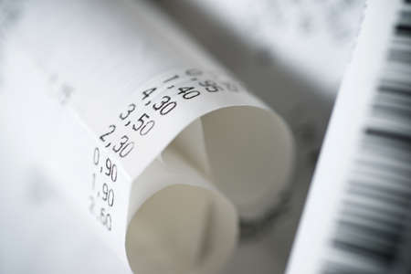 a paper receipt with the list of economic issues. Business and economics. Family financial budget
