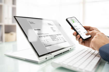 Checking E Invoice In Accounting Software On Computer