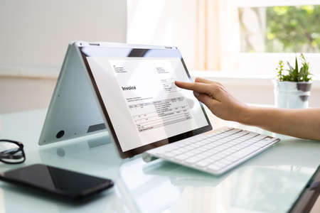 Digital Electronic Bill And Accountant E Invoice On Laptop