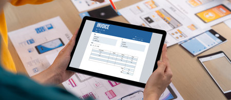 Invoice on computer screen from accounting application. Computer program for financial and budget of corporate business. brisk.