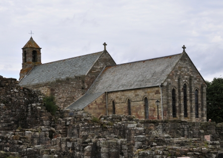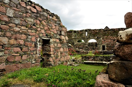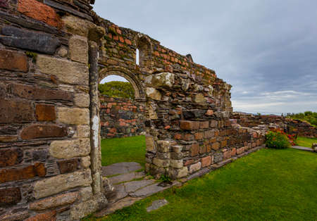 A view of the ruins of a medieval nunnery and convent building on the island of Iona
