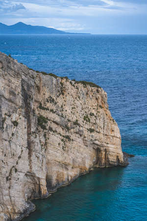 View of the Cliffs near Skinari Cape in summer on Zante Island, Greece