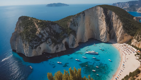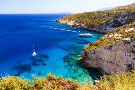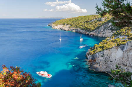 Luxurious vessels in a bay on the island of Zakynthos with beautiful blue waters