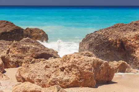 Amazing landscape of Kokkinos Vrachos Beach with blue waters, Lefkada, Ionian Islands, Greece