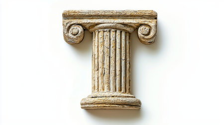 realistic representation of the letter T, crafted with an antique column texture showcasing intricate details. This unique design stands out against a pristine white background.