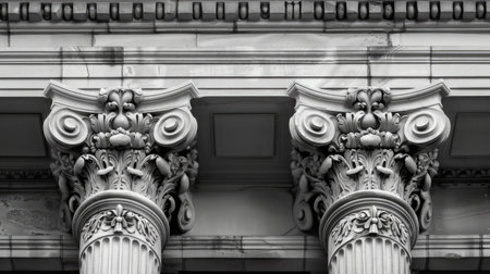 Architectural detail featuring elaborate carvings on a column capital, highlighting floral patterns and spiral motifs