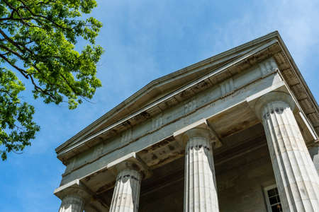 Riga, Latvia- May 29 2020: building architecture white column art details