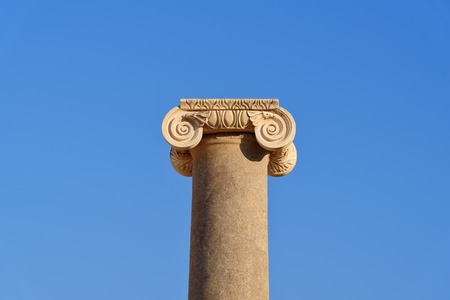 Ionic order column chapiter against blue sky