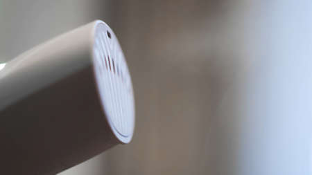 Close-up of a white indoor air purifier. Dust and allergy cleaner in the house.