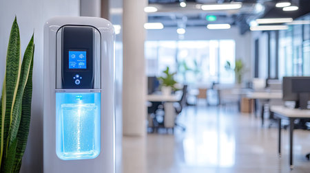 A smart water cooler with app connectivity in a tech startup office