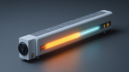This image features a modern heating device designed for home use, showcasing sleek lines and vibrant light indicators for efficient temperature control.