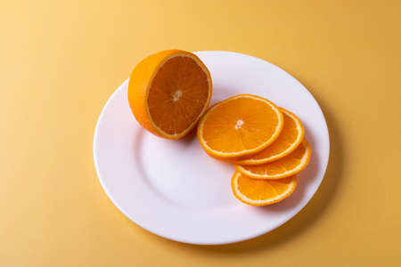 Sliced orange on a white plate. Close-up.