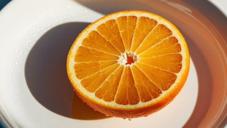 Fresh Orange Slices Radiating Brightness on a Gleaming Surface, Capturing Nature s Healthy Nutrition
