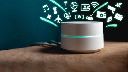 Smart Home assistant device, Virtual assistant , Artificial intelligence, Home control internet of things concept