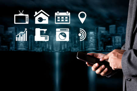 Smart home control with smartphone, smart home app. Lifestyle of person in modern life internet of things, Smart house technology.The new innovation of life.