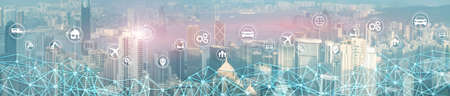 Smart City IOT Concept. Wallpaper for your site. Panoramic Business Banner