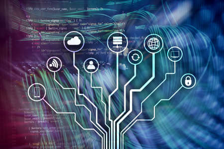 IOT internet of things digital technology concept. Server room background.